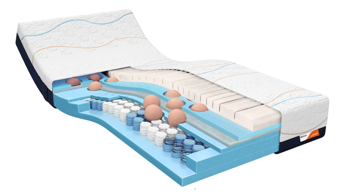 Het visco-elastisch traagschuim verlicht druk op heupen en schouders en heeft een open structuur die warmte en vocht sneller afvoert. Hierdoor draai je gemakkelijker, blijft de doorbloeding optimaal en worden zenuwen niet afgekneld. De speciale insnijdingen per lichaamszone zorgen voor een nauwkeurige drukverdeling en ondersteuning op maat. - Slow Motion tijk